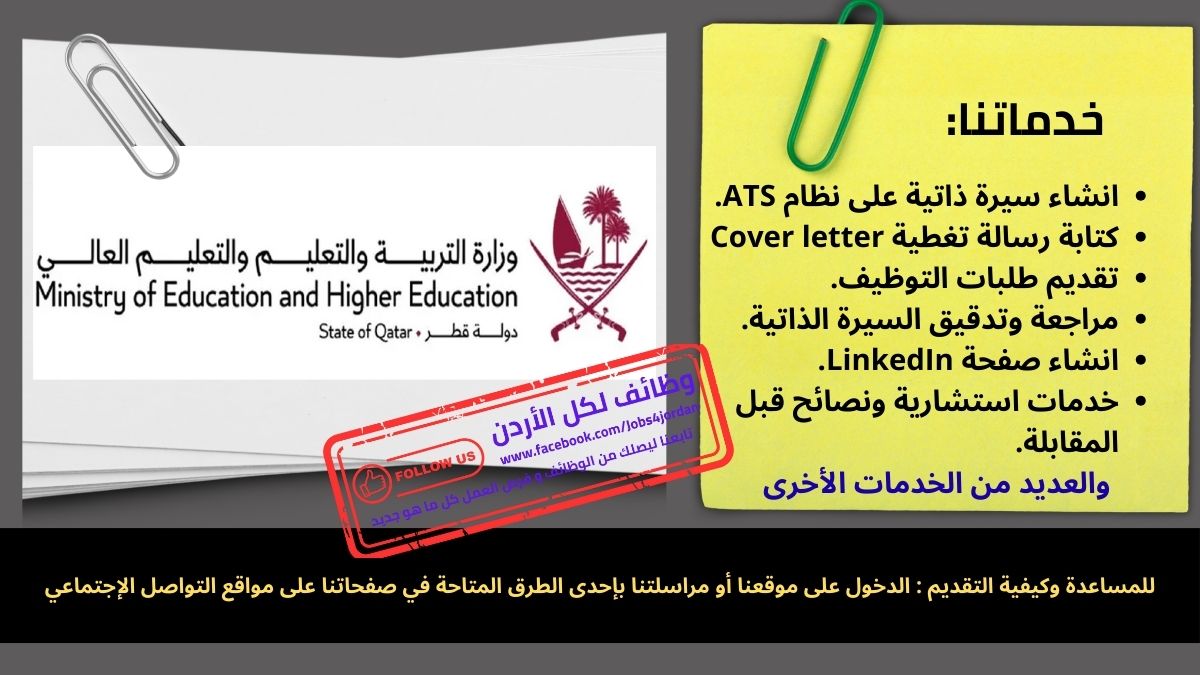 الوظائف المتاحة للمعلمين كما حددتها وزارة التعليم القطرية لعام 2026 :